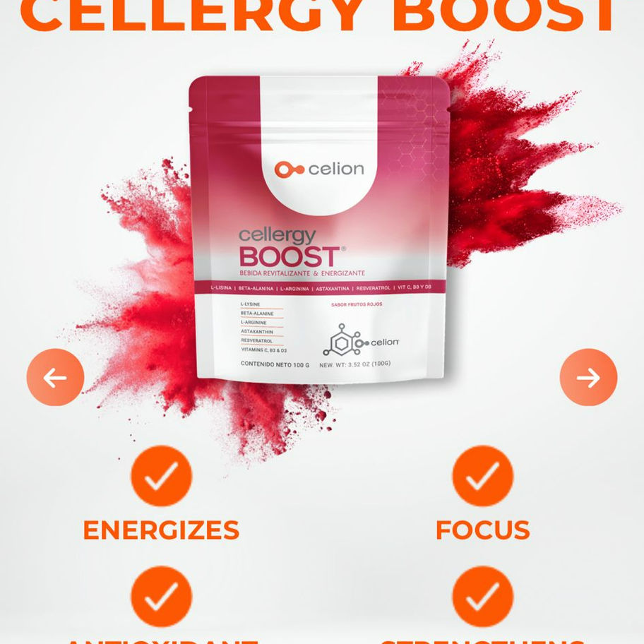 Cellergy Boost is formulated to revitalize cells and provide a sustainable energy boost throughout the day. With natural ingredients and powerful antioxidants such as resveratrol and astaxanthin, this drink improves cellular function, helps fight free radicals, elevates your energy and stimulates neuronal function.